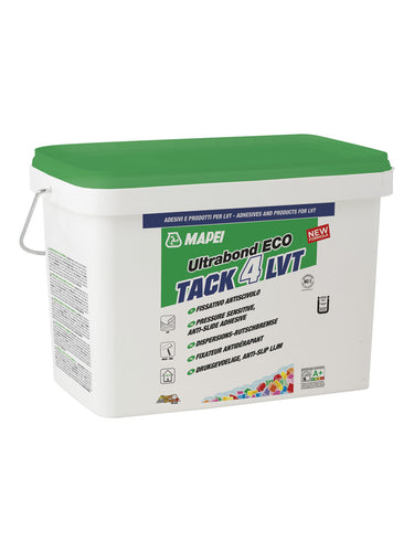 Ultrabond Eco Tack 4 LVT van Mapei is een gebruiksklare, oplosmiddelvrije contactlijm op dispersiebasis, speciaal ontwikkeld voor het plaatsen van LVT in tegels en stroken. Deze drukgevoelige lijm creëert een duurzame, maar indien nodig ook verwijderbare hechting, ideaal voor ruimtes waar vloeren later vervangen of hersteld moeten worden.