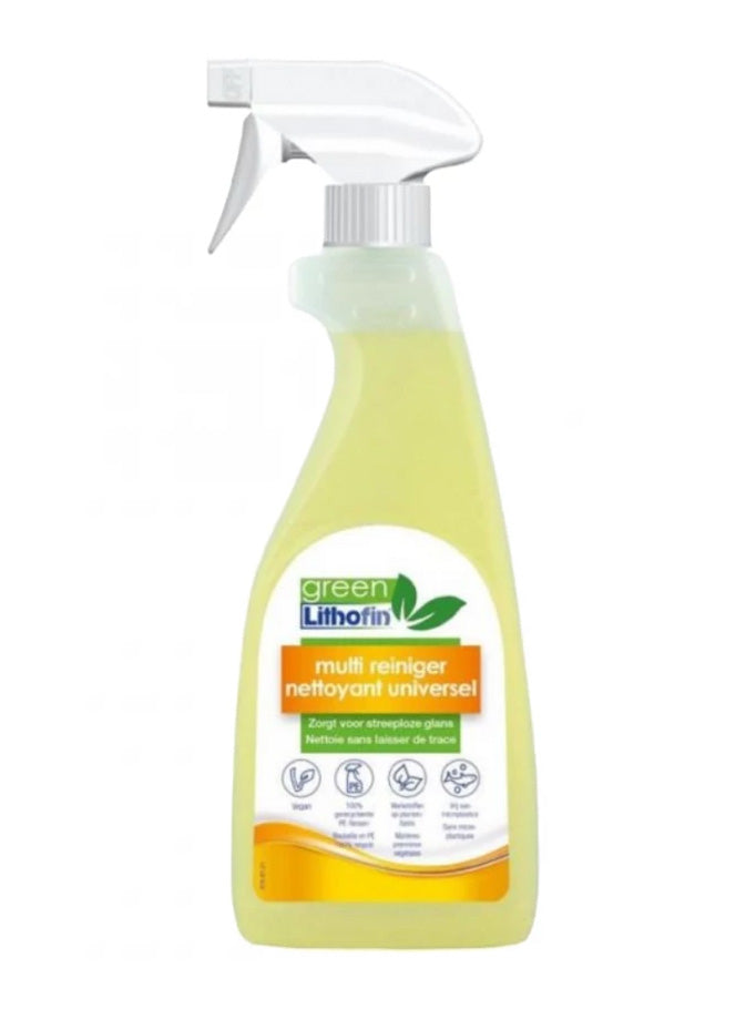 Green by Lithofin Multi Reiniger is geschikt voor alle waterbestendige oppervlakken in het hele huis. Geformuleerd op basis van plantaardige ingrediënten weekt het vuil los voor een sprankelend resultaat. Voorzien van hypoallergeen parfum voor een natuurlijke frisheid. Green by Lithofin Multi Reiniger verwijdert vuil en laat nette en streeploze oppervlakken achter in het hele huishouden, zoals natuurstenen oppervlakken, keramiek, kunststof, hoogglans keukenfronten, roestvrij staal, kranen, spiegels, glas, windschermen, gepolijste en ongepolijste oppervlakken. Natuurlijke tensio-actieve stoffen verwijderen zelfs vettige en olieachtige vervuilingen. Green by Lithofin producten zijn hoogwaardige reinigers ontworpen op basis van een plantaardige biologisch afbreekbare formule. De traceerbare herkomst van gecertificeerde ingrediënten stelt ons in staat om reinigers van deze productlijn te bestempelen als veganistisch, GMO-vrij en vrij van microplastics.