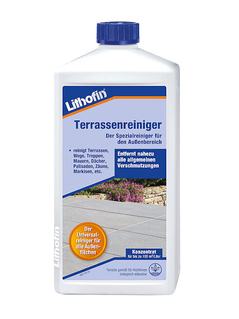 Verwijdert gebruikelijke vuilafzettingen en vervuiling. Voor terrassen, trappen, paden, muren van natuursteen en beton, gevels, klinkers, maar ook voor pleisterwerk, hekken, fotovoltaïsche systemen enz.