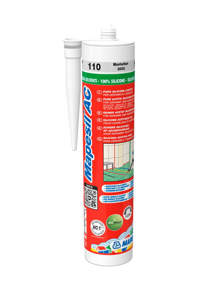 Mapesil AC is een gebruiksklare, azijnzuurvernettende siliconenkit voor het elastisch afdichten van voegen in tegelwerk en sanitaire ruimtes. De kit is ontwikkeld voor aansluit- en dilatatievoegen waar een blijvend elastische afdichting vereist is.