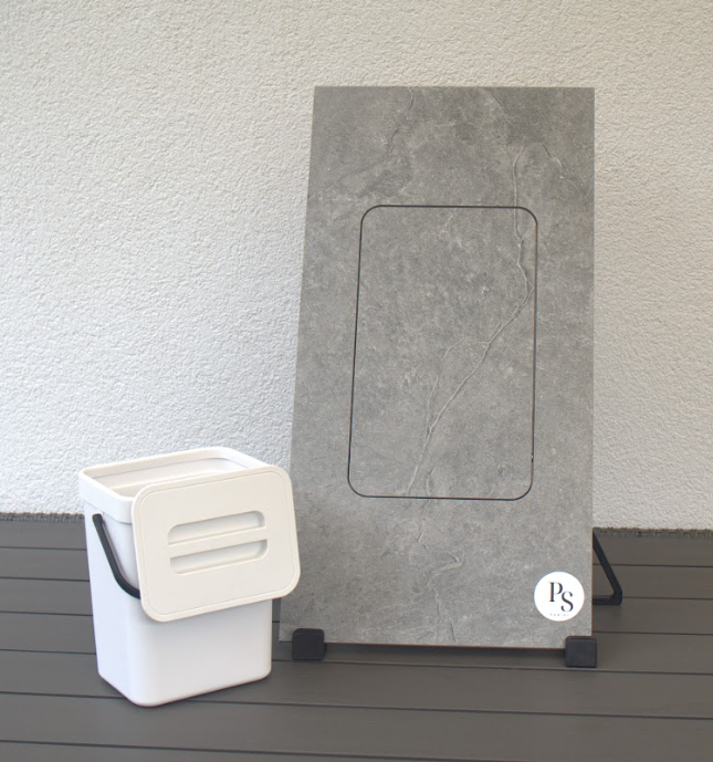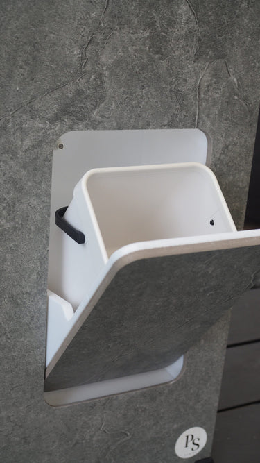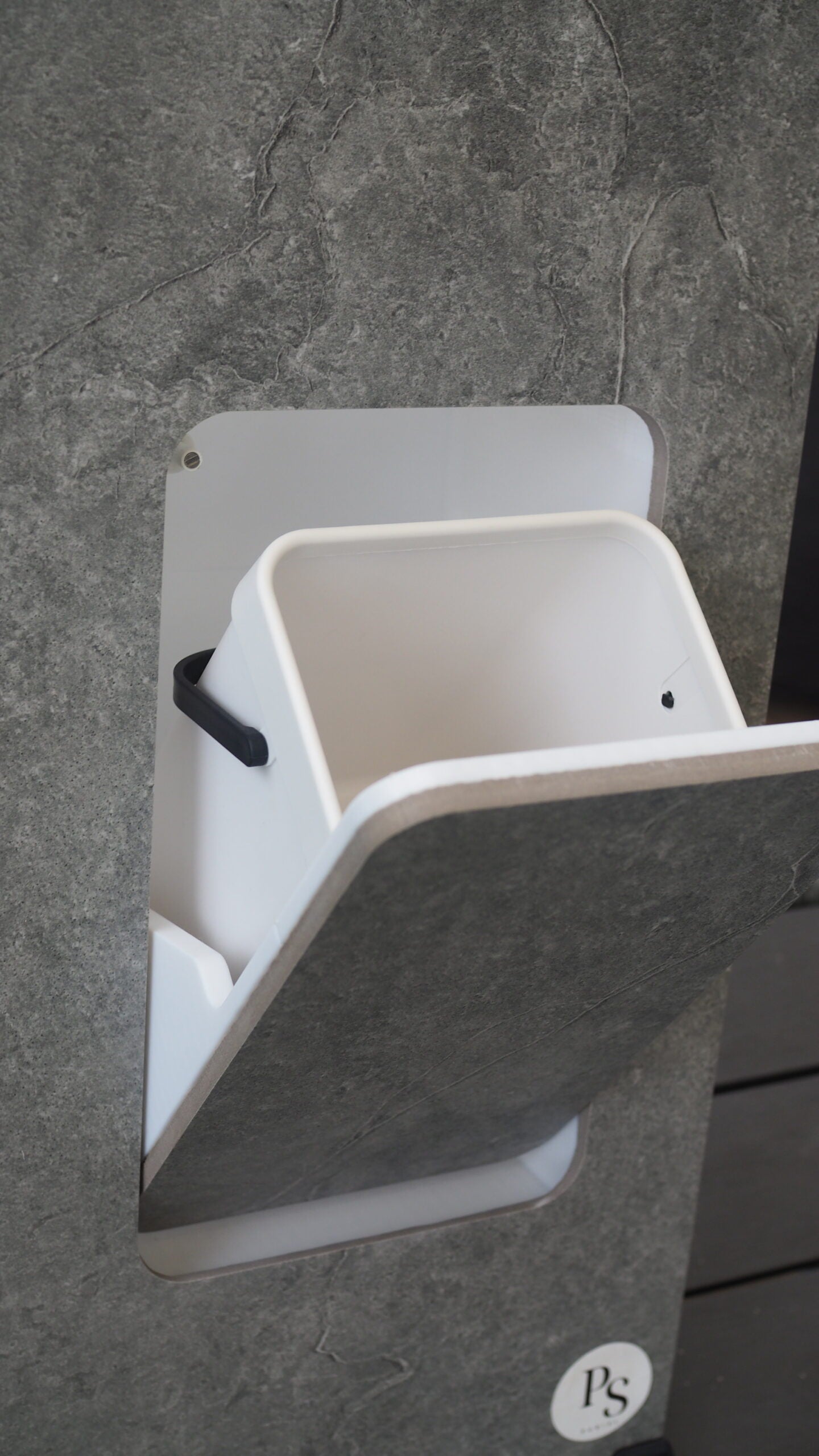 De Hidden Ceramics betegelbare vuilbak is een zwart inbouwelement voor wandintegratie. Het front wordt afgewerkt met een tegel zodat het element visueel opgaat in het wandvlak.
