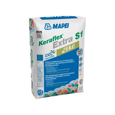 Keraflex Extra S1 Zero combineert een hoge hechtsterkte met verlengde open tijd en verminderde afglijding, wat zorgt voor een gecontroleerde verwerking op de werf. De Zero-formule compenseert de CO₂-uitstoot over de volledige levenscyclus van het product.