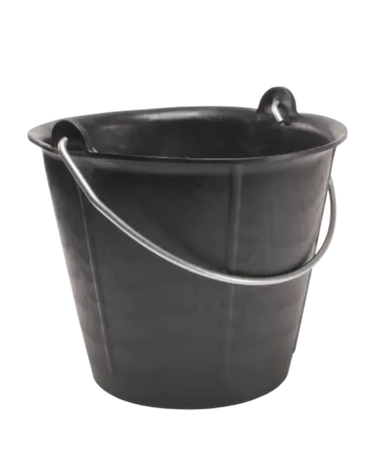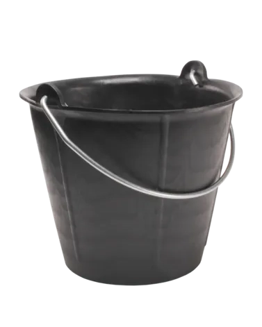 Gegradeerde bouwemmer met metalen handgreep. De dikke wand met verticale ribben maakt de emmer extra duurzaam. Ideaal voor het afmeten en gieten van water, lijmen en mortels.