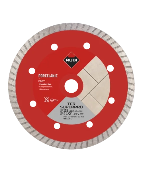 TCR SUPERPRO biedt de turbo prestaties in compact formaat voor veelzijdig tegelwerk. Het TURBO TCR diamantzaagblad zorgt voor een fijne zaagsnede in porseleinen tegels