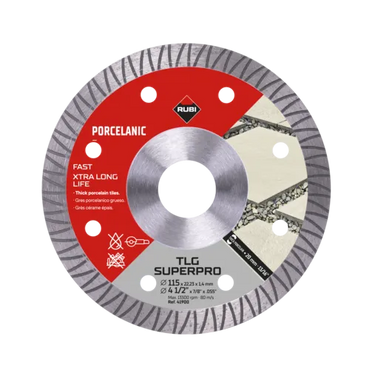 TURBO - TLG SUPERPRO Diamantzaagblad is afgestemd op 2 cm porselein en levert nette, gecontroleerde sneden met koelsleuven.
