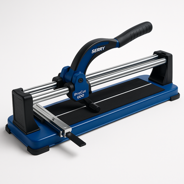 Handmatige tegelsnijder met dubbele geleiding voor precieze rechte snedes tot 60 cm, inclusief breekmechanisme en ergonomisch handvat.
